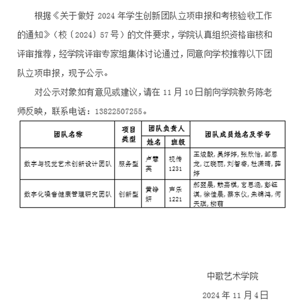 关于122cc太阳成集团推荐2024年本科生创新团队立项申报的公示
