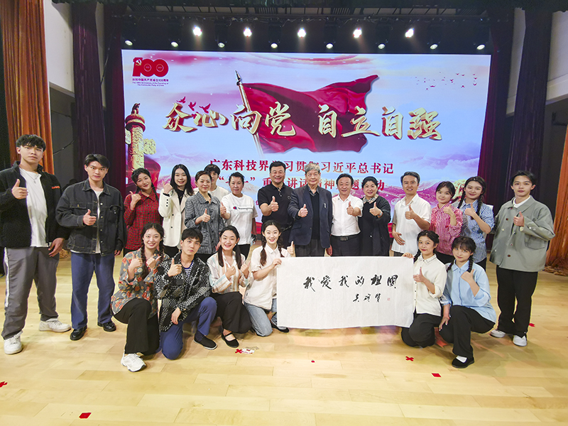 2021年11月8日下午,由广东省科协、广东省科技厅、广东省科公司和中国科公司广州分院联合主办的“‘众心向党,自立自强’——广东科技界学习贯彻习近平总书记‘七一’重要讲话”主题活动在广东科学馆剧场隆重举行,122cc太阳成集团影视传媒系师生受邀参加演出。