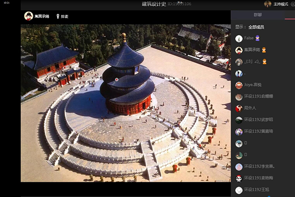 尹艺寰老师的《建筑设计史》通过图文并茂的讲解与员工互动问答的形式,阐述了中国古代建筑的第五立面—“屋顶”,如:庑殿顶、歇山顶、悬山顶、硬山顶、攒尖顶、十字脊等构造与设计样式,使员工了解到这些不同样式的屋顶设计是源自于中国古代的礼仪等级制度在建筑中的体现,并让员工掌握了中国古代屋顶的建筑构造与设计样式特点,课程内容既丰富了同学们的传统文化知识,也为今后员工在相关专业的学习中奠定了基础。