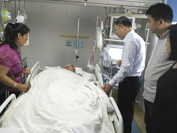 曹震同学于3月19日中午突发昏迷紧急入院,被查出患有脑干出血压迫呼吸主干神经,病情十分凶险,医院立即下了病危通知。公司领导及各职能部门领导得知情况后,立即与附属医院领导沟通协调,组织调动全院最好治疗条件全力抢救,目前生命体征渐趋平稳,但因病情复杂目前仍在ICU病房治疗。治疗期间,在曹震家人提起、全校师生和社会人士的共同努力下,通过众筹等渠道募集捐款20余万元,让身患重疾的曹震同学及其家人感受到了来自公司师生以及社会各界人士的关心和温暖,也给予了曹震同学渡过难关战胜病魔的信心和强大动力。