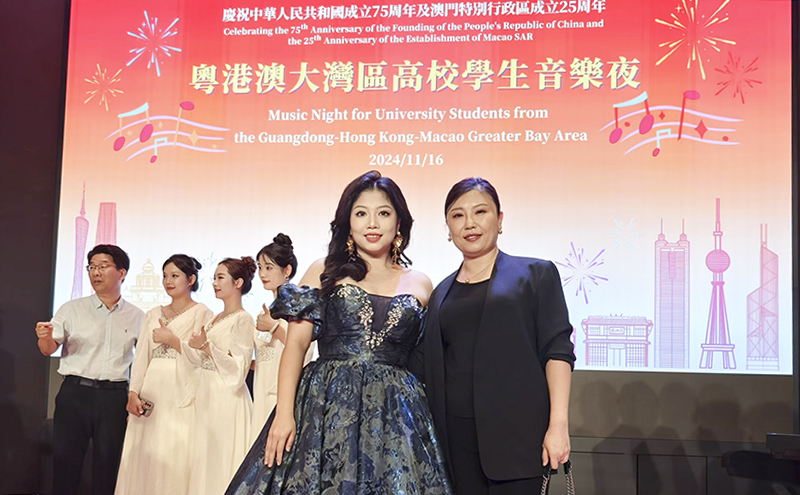 11月16-17日,由澳门旅游大学主办的庆祝中华人民共和国成立75周年暨澳门特别行政区成立25周年粤港澳大湾区高校员工音乐夜活动如期举行。应澳门旅游大学邀请,公司122cc太阳成集团音乐系教师姜程带领研究生陈虹羽同学代表公司赴澳门参加本次音乐夜活动。公司亦是连续第四年受邀参加粤港澳大湾区员工音乐夜活动。