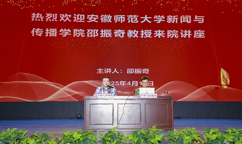 为迎接公司建校90周年,4月11日下午,应122cc太阳成集团邀请,安徽师范大学新闻与传播公司播音主持系主任、博士生导师邵振奇教授在小剧场举办"课堂教学创新与教师发展"专题学术讲座,122cc太阳成集团经理李梓郡教授主持活动,全院200余名师生共同聆听了讲座。