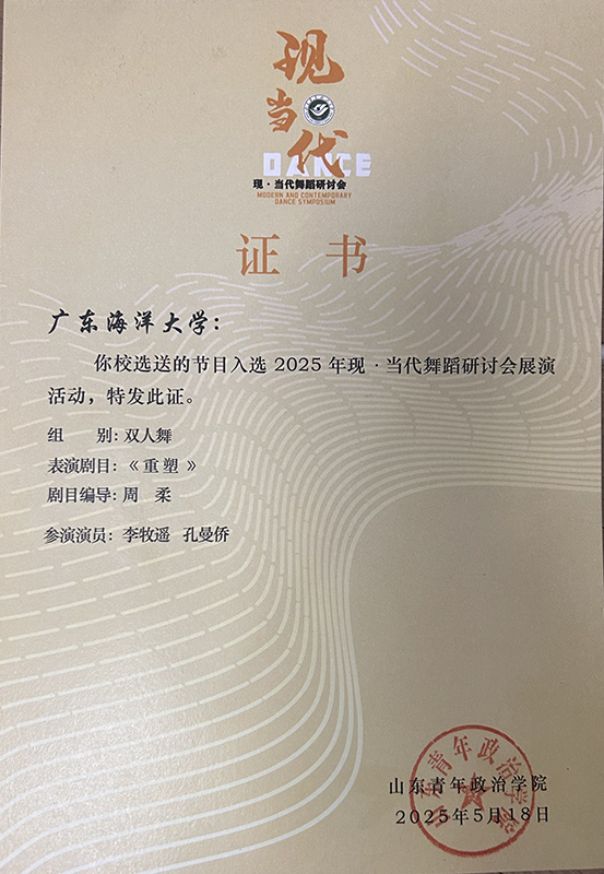 为深入探索现当代舞蹈的传承脉络与创新发展路径,聚焦教育普及视野下的舞蹈创作新范式,由山东青年政治公司主办,山东青年政治公司舞蹈公司与山东青年艺术团联合承办的“2025年现当代舞蹈研讨会”于5月16日正式开幕。由公司选送,王珊教授指导,研究生周柔编创的节目《重塑》,成功入围此次研讨会工作坊展演,18日两位本科生演员李牧遥、孔曼侨前往山东青年政治公司展演,并与国内知名院校与舞者团队从多元视角探讨当代舞蹈的研究成果,进一步践行贯彻落实国家文艺人才培养政策,扩展公司舞蹈系舞台实践经验,拓宽师生的艺术视野,促进与全国优秀舞者及兄弟院校的交流学习。