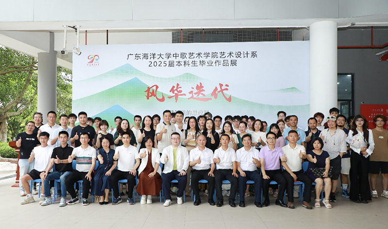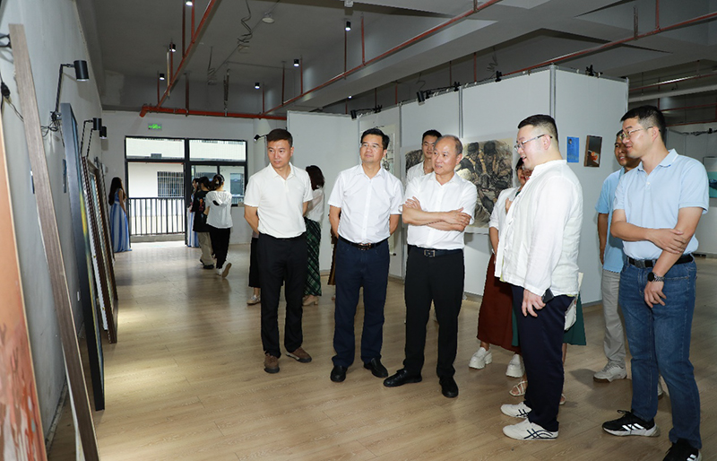 开幕式后,一行参观了毕业设计展,展览现场精彩纷呈,视觉传达设计专业巧妙融合海洋文化与现代设计语言,环境设计专业聚焦乡村振兴呈现美丽乡村建设方案,产品设计专业立足"中国智造"展示科技与人文的完美结合,美术学专业则通过画笔记录南路革命历史。